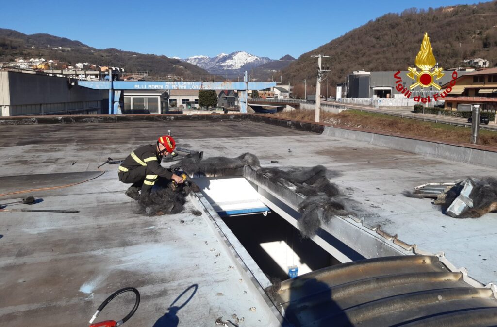 Il personale dei vigili del fuoco ha quindi rimosso i pezzi di ondulato danneggiati e ha ventilato il capannone per evitare la formazione di eventuali fumi tossici. Le operazioni di soccorso sono terminate poco dopo mezzogiorno.