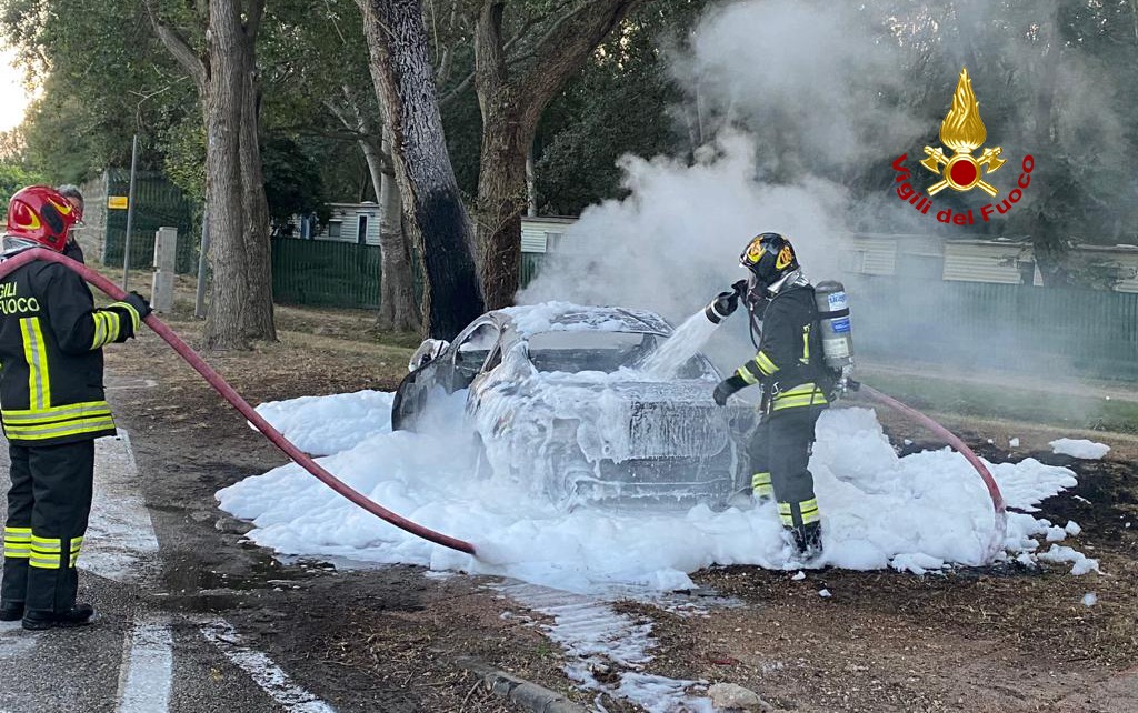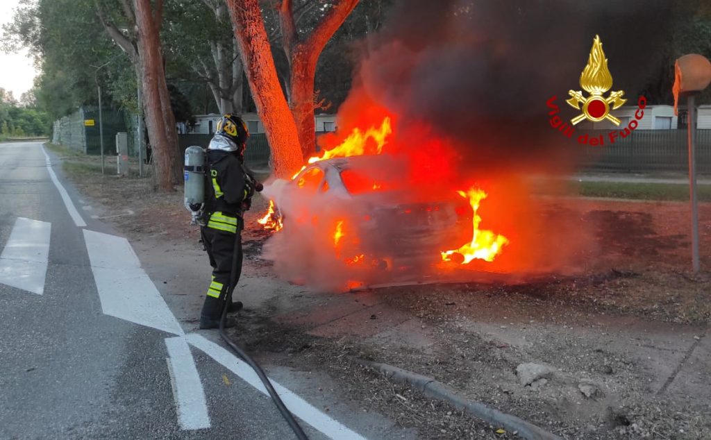 I pompieri arrivati dal locale distaccamento con un’autopompa e un’autobotte, hanno spento con la schiuma l’auto andata irrimediabilmente distrutta, evitando anche l’incendio degli attigui alberi.