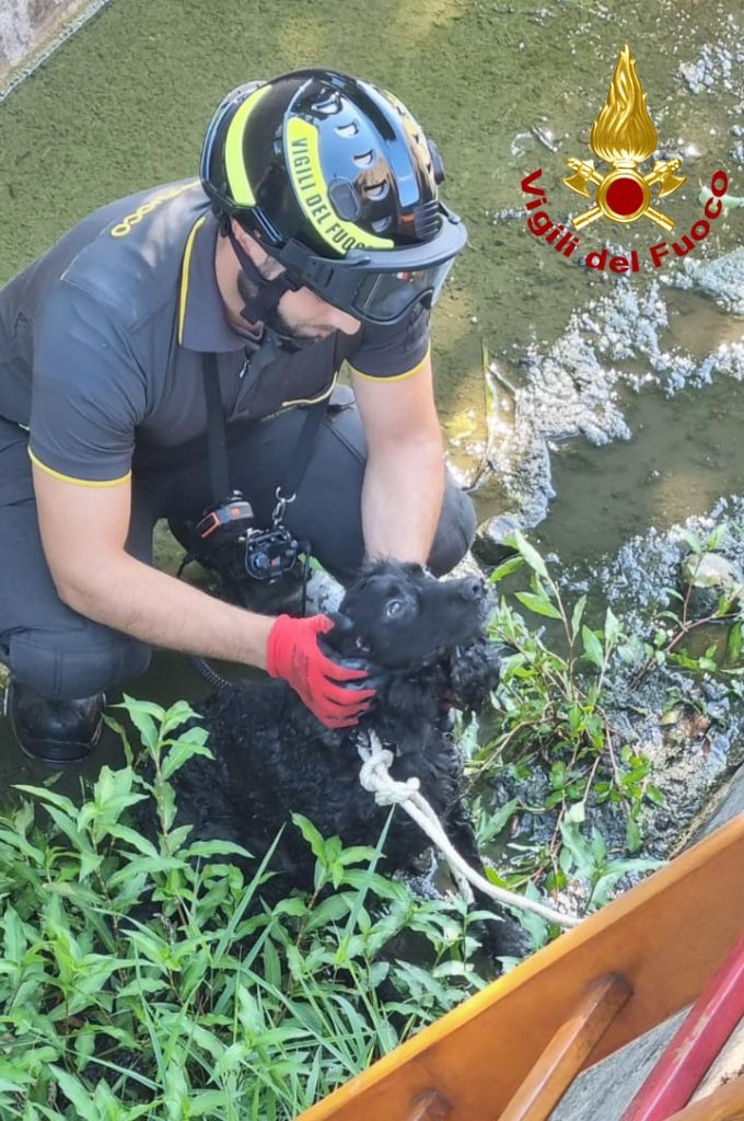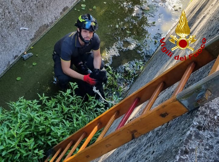 I pompieri arrivati da Arzignano, sono scesi nello stretto canale dalle pareti verticali in cemento, utilizzando una scala e riuscendo subito a recuperare il cagnolino. Appena portato in superficie è arrivato il suo padrone, felice d’aver ritrovato l’animale, che aveva perso di vista una mezz’ora prima.