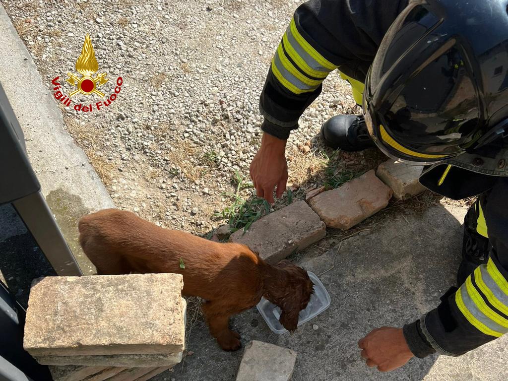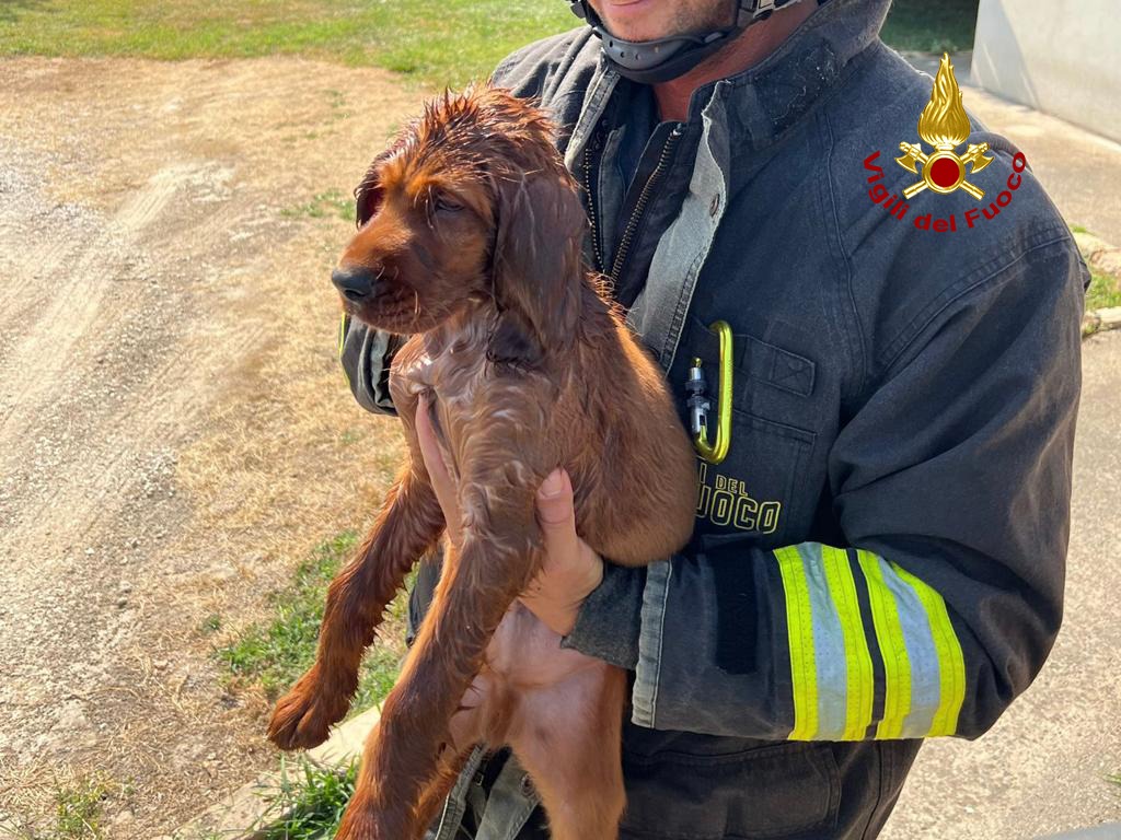 A dare l’allarme i vicini di casa, i proprietari erano momentaneamente via, che hanno sentito i guaiti di lamento dell’animale che tentava inutilmente di liberarsi.