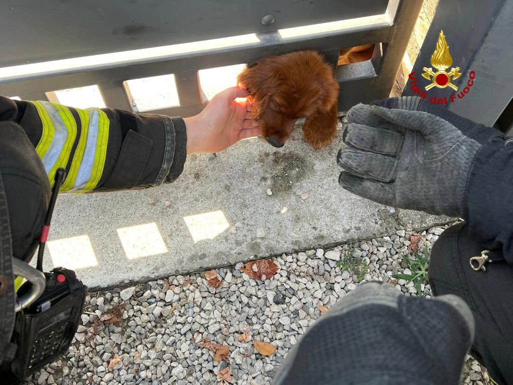 Giovedì mattina, i vigili del fuoco sono intervenuti presso un’abitazione di Noventa Padovana per salvare un cane di razza cocker, rimasto incastrato con la testa nel quadrato di un cancello.