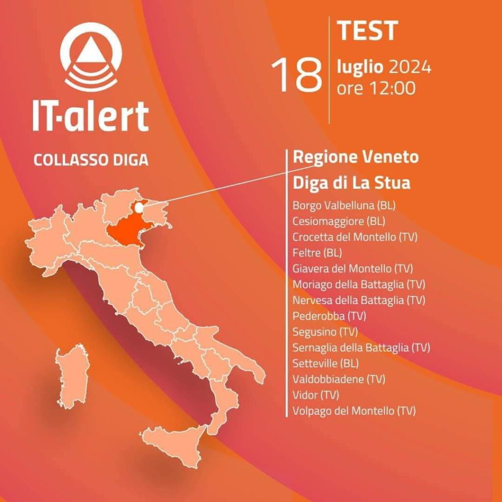 Collassa una diga in Veneto: è un test del sistema IT-Alert. Quando e dove