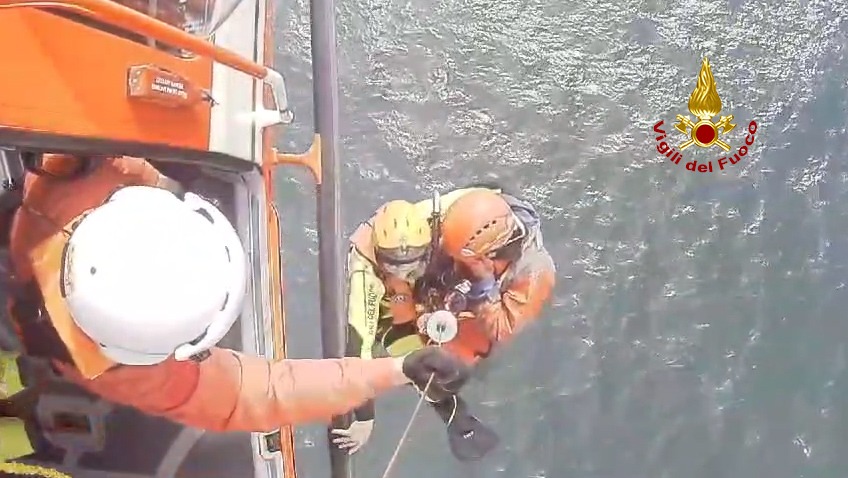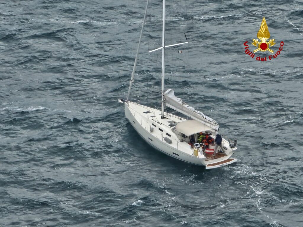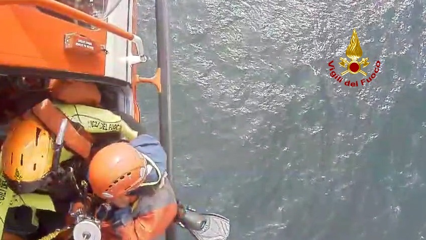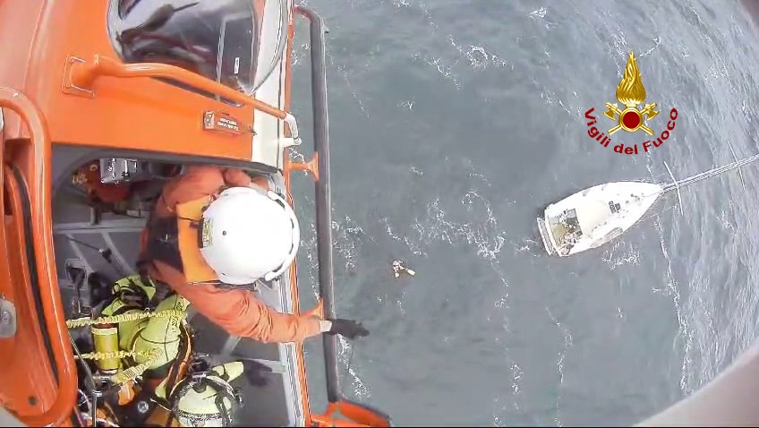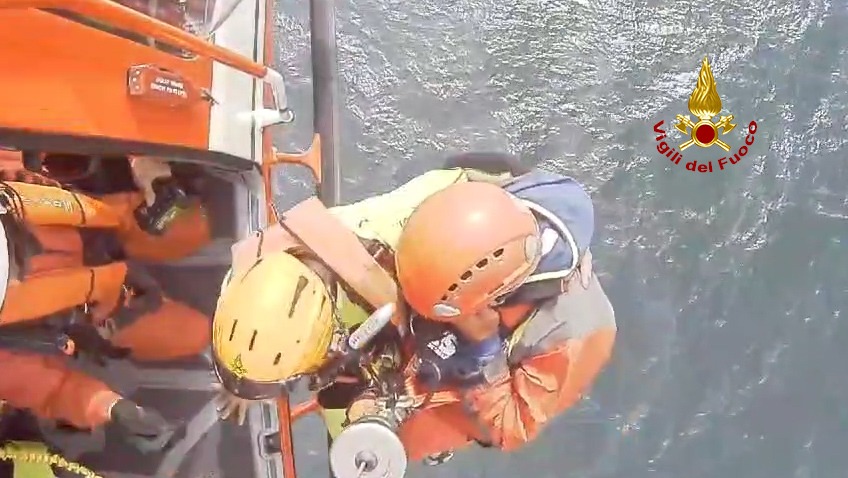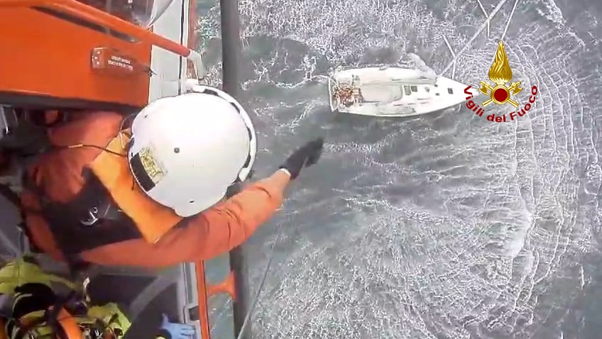 Individuata l’imbarcazione un elisoccorritore si è calato in acqua raggiungendo a nuoto l’imbarcazione.