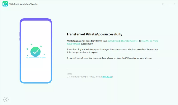 Completati questi passaggi, adesso sarai in grado di trasferire messaggi Whatsapp attraverso i due dispositivi. Ricordati che, durante la trasmissione dei dati, il nostro suggerimento è quello di evitare di muovere oppure usare il telefono.