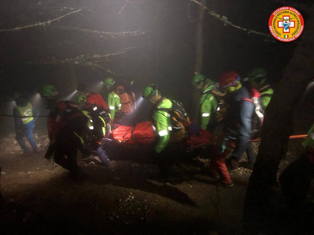 I soccorritori si sono quindi incamminati per raggiungere l'infortunato a piedi insieme agli operatori della Stazione di Levico, mentre la gestrice del rifugio Casarota è salita fino al luogo dell'incidente per portare coperte e bevande calde. I soccorritori, tra cui vi erano anche un medico e un'infermiera del Soccorso Alpino, hanno raggiunto l'escursionista e lo hanno sottoposto a terapia antalgica per il dolore. Intorno alle ore 1, dopo aver stabilizzato e imbarellato l'infortunato, un totale di 16 soccorritori hanno cominciato la discesa, resa difficile dalla scarsissima visibilità dovuta alla nebbia, dandosi il cambio per il trasporto della barella, fino al rifugio Casarotta e poi fino a valle, dove hanno consegnato l'infortunato all'ambulanza.