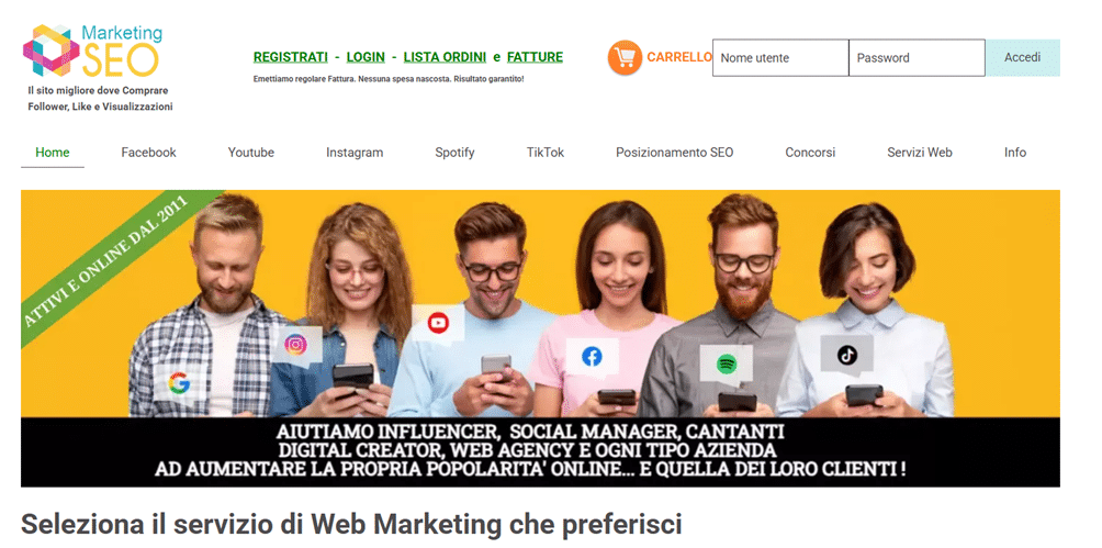 Ora veniamo a un’autentica chicca, una perla tutta italiana che ho avuto il piacere di testare personalmente: Marketing-seo.it. Questa piattaforma è l’orgoglio nazionale del settore. Dal 2009 non sbaglia un colpo e ha saputo ritagliarsi un ruolo centrale nel mercato dei servizi digitali grazie a una gestione diretta dei follower tramite una rete proprietaria esclusivamente italiana. Qui la qualità è altissima, ve lo garantisco io, con followers che arrivano da canali interni e reali, ideali per chi punta a risultati concreti e duraturi nel nostro paese.
