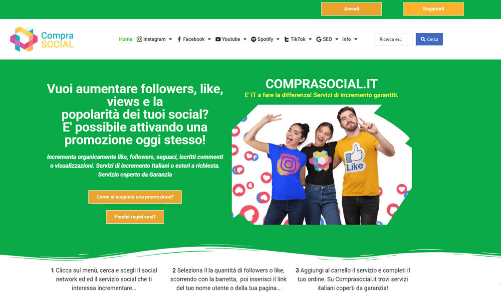 Il punto forte di Comprasocial.it è sicuramente il prezzo, decisamente competitivo, unito a un'interfaccia davvero intuitiva: si compra con un click, niente password né dati sensibili richiesti, zero rischi. D’altra parte, l’assistenza clienti potrebbe migliorare in tempestività e presenza, ma considerando la convenienza economica e la rapidità della consegna, questo resta un piccolo dettaglio facilmente trascurabile. Se cercate velocità e semplicità al giusto prezzo, questo sito è esattamente ciò che fa per voi.