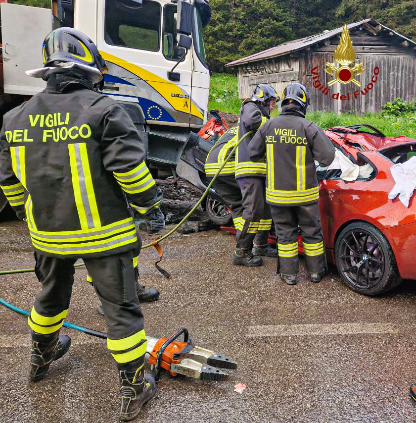 Alle 19:10 di giovedì, i vigili del fuoco sono intervenuti località Malga Ciapela nel comune di Rocca Pietore in provincia di Belluno per un'auto finita contro un camion parcheggiato a bordo strada: d...