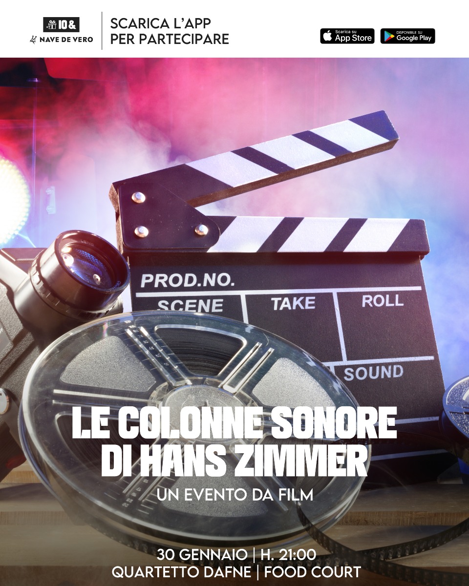 VENEZIA – Il Centro Commerciale Nave de Vero inaugura il 2026 con un evento musicale straordinario dedicato a Hans Zimmer, uno dei più grandi compositori contemporanei. Venerdì 30 gennaio alle ore 21:00, presso la Food Court del Centro, si terrà il concerto “Le Colonne Sonore di Hans Zimmer – Un evento da film”, eseguito dal prestigioso Quartetto Dafne.