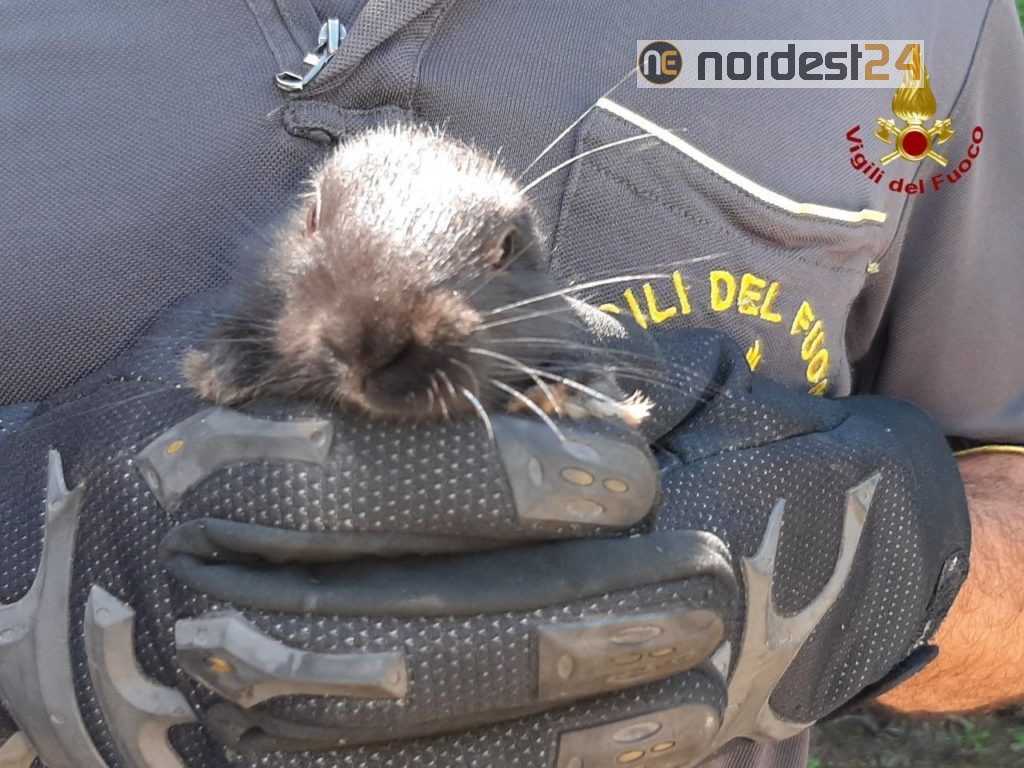 Coniglio nano si rifugia nei fitti arbusti: lo recuperano i pompieri