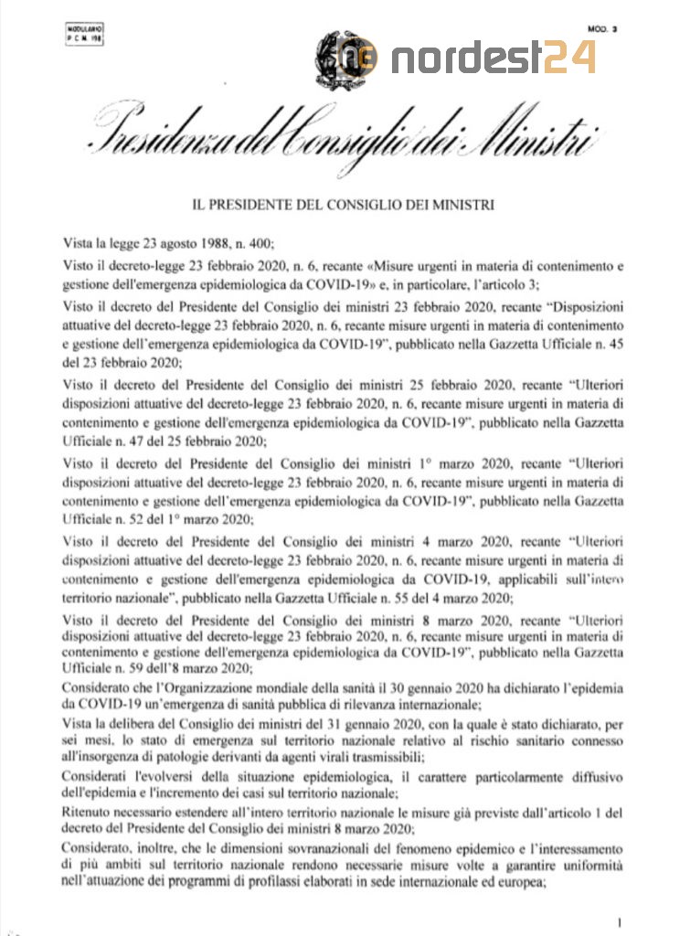 Il Presidente del Consiglio, Giuseppe Conte, ha firmato il Dpcm 9 marzo 2020 recante nuove misure per il contenimento e il contrasto del diffondersi del virus Covid-19 sull'intero territorio nazionale...
