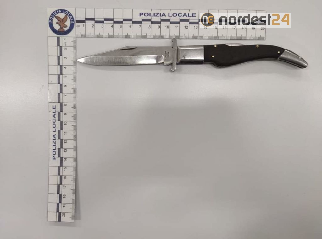 Dopo alcune verifiche, gli Agenti procedevano alla perquisizione personale del soggetto, trovandolo in possesso di un coltello a serramanico di una lunghezza di 24 cm.
