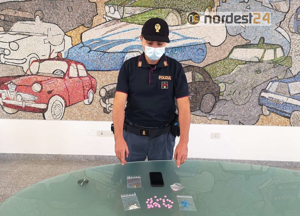 La perquisizione veniva, quindi, estesa all’autovettura del 23enne rinvenendo nel vano porta oggetti un cristallo di “MDMA” ed altre due pasticche di ecstasy.
