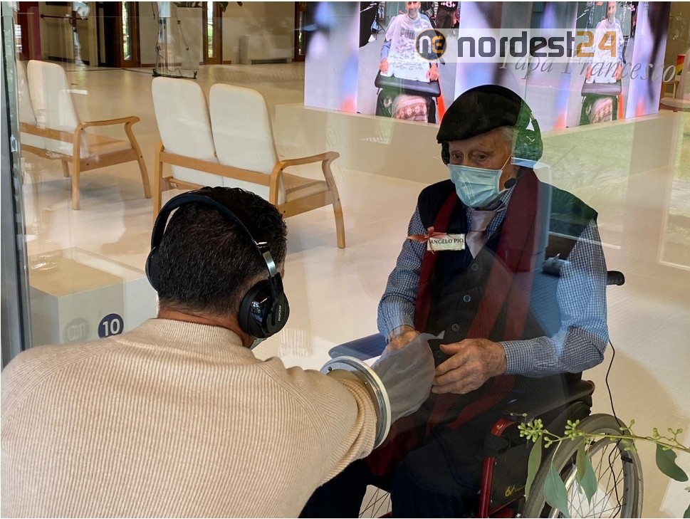 Si chiama“Emozioni senza confini” la nuova struttura ideata e realizzata all’interno delcentro servizi alla persona del comune trevigiano. Uno spazio realizzato nel Salone delle Rose, rimodulato e allestito con separatori in vetro e postazioni dove ospiti e famigliari possono parlarsi e toccarsi grazie a dispositivi di sicurezza. 12 postazioni dotate di guanti inseriti nella parete per consentire il contatto fisico e di un dispositivo audio (cuffie e microfono) per la conversazione.