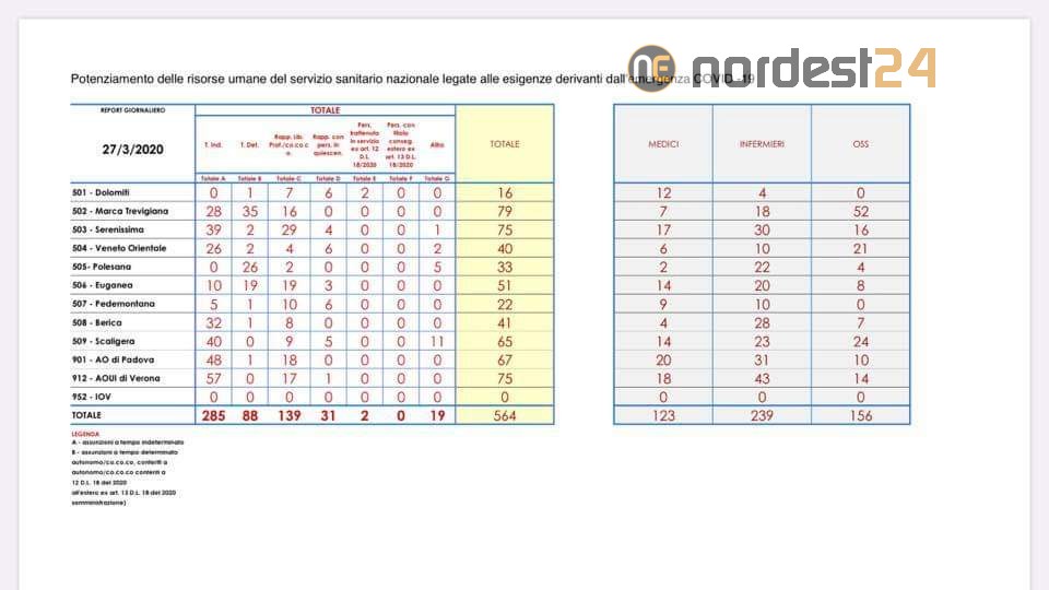 Ad oggi, il sistema sanitario del Veneto è arrivato a effettuare 84.000 tamponi (numero record nel mondo in rapporto agli abitanti), con una media regionale di positivi pari al 9,6%. Degli 84.000, 27.436 sono stati effettuati sul personale sanitario.