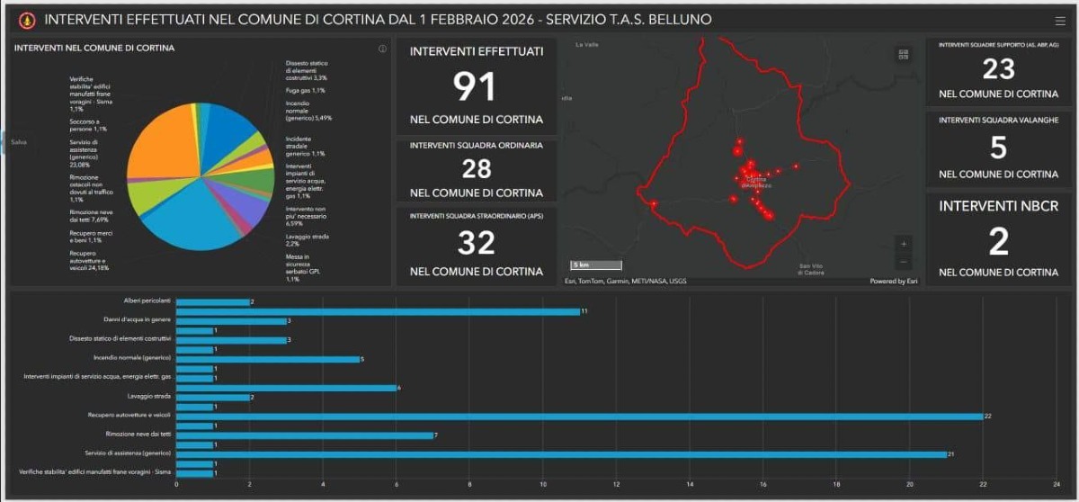 CORTINA D’AMPEZZO (BL) – Sono stati 91 gli interventi effettuati dai Vigili del Fuoco a Cortina d’Ampezzo nel corso dei Giochi Olimpici Invernali 2026, dal 4 al 22 febbraio.