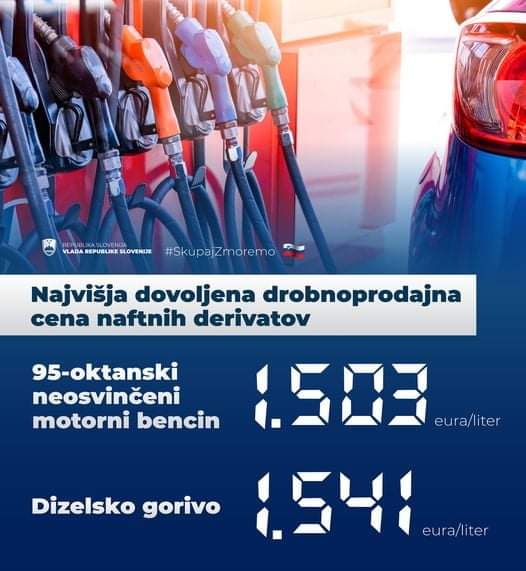 A partire da oggi, 15 marzo, entra in vigore il nuovo decreto del governo sloveno che stabilisce i seguenti prezzi massimi del carburante:⛽️ benzina 95 ottani: 1,503 €/litro⛽️ diesel: 1,541 €/litro...
