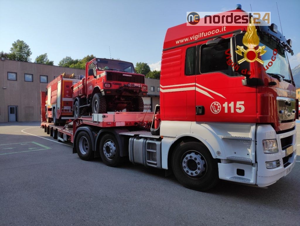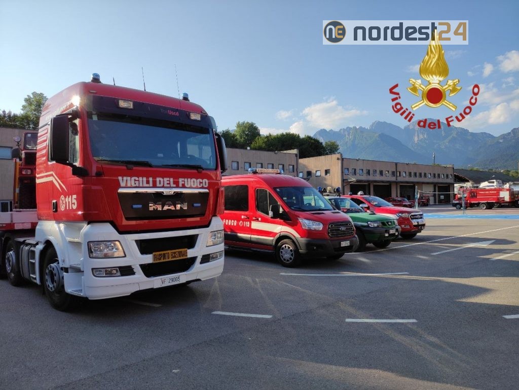 Belluno, un modulo operativo antincendio completo che comprende 9 vigili del fuoco, un'autopompa, un'autobotte, 2 fuoristrada con modulo antincendio boschivo.