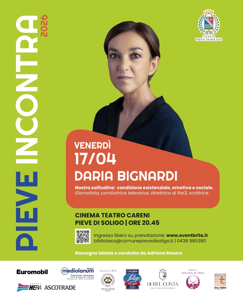 Daria Bignardi porterà a Pieve Incontra il tema della solitudine inteso non solo come condizione privata, ma come fenomeno sociale e collettivo, spesso amplificato dai social media: “Ci si vergogna a dire che ci si sente soli – afferma Eleonora Sech, assessore alla Cultura di Pieve di Soligo – ma lo siamo sempre di più. Daria Bignardi lo dice con sincerità, ironia, coraggio. La solitudine allora può diventare la lente attraverso cui osservare sé stessi, gli altri e il mondo. Un tema attuale che ci interroga sul futuro”.
