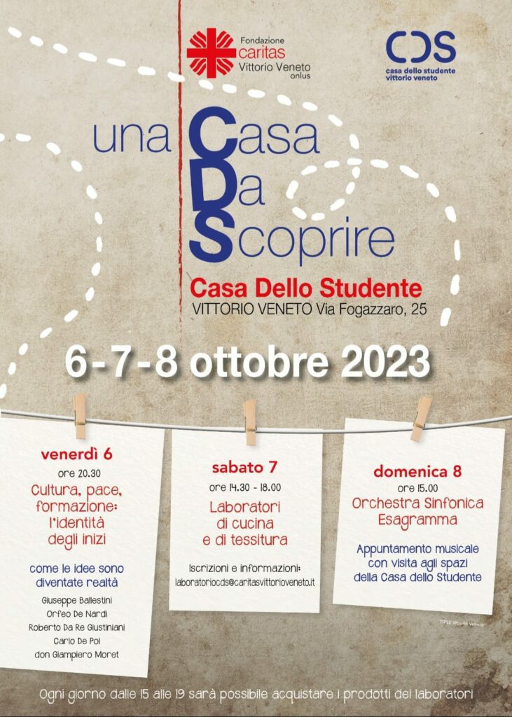 “Una casa da scoprire”: questo il titolo della tre giorni di incontri e laboratori organizzati presso la Casa dello Studente di Via Fogazzaro 25, a Vittorio Veneto, per i prossimi venerdì 6, sabato 7 e domenica 8 ottobre.