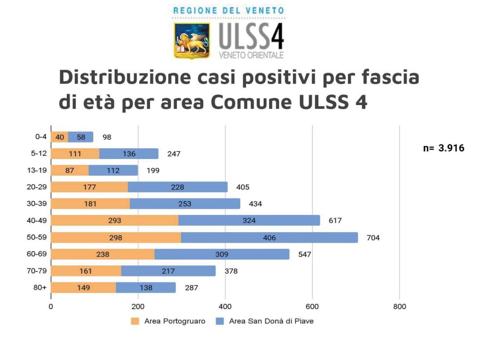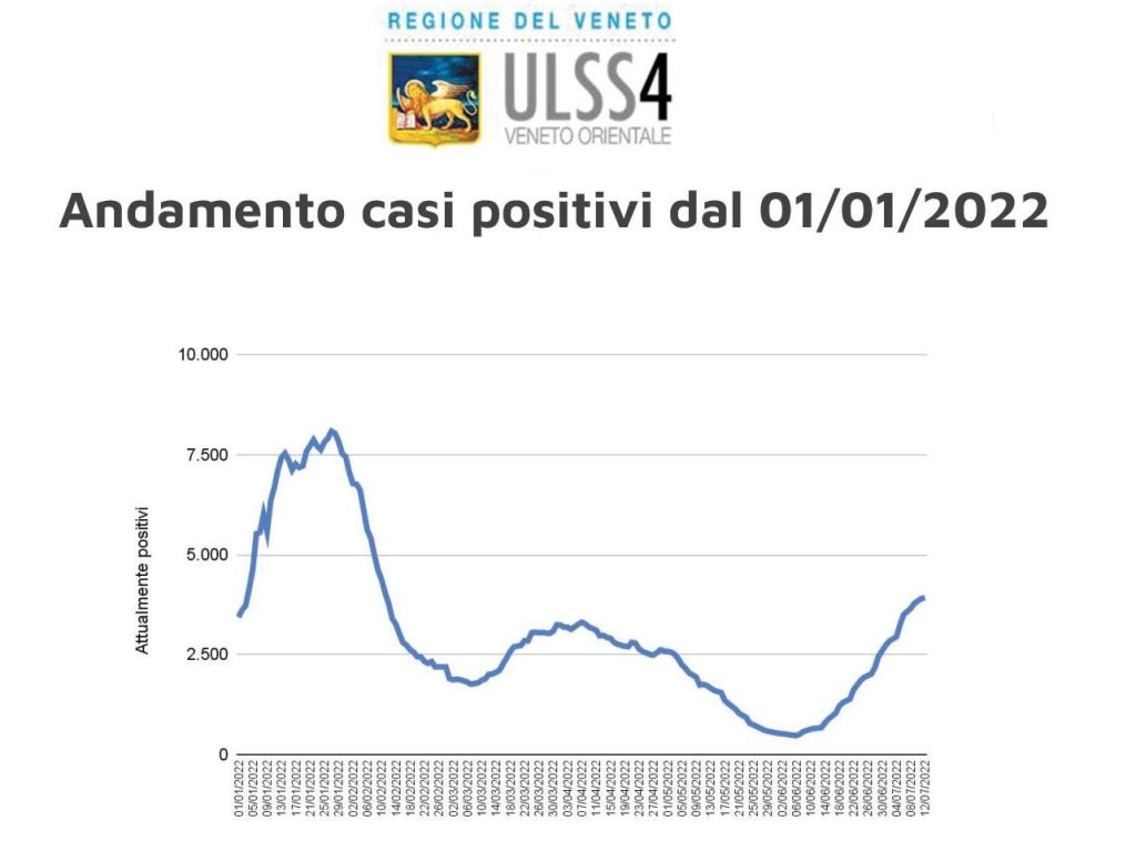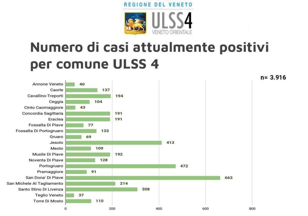 Continuano ad aumentare le positività da Covid 19 in tutto il Veneto orientale. L’incremento dei casi iniziato a metà giugno, con un trend tutt’ora in ascesa, ha portato al numero complessivo di 3916 persone positive al virus nel territorio di questa Ulss, con la maggior entità localizzata nei comuni più popolosi: San Donà di Piave, Portogruaro e Jesolo.