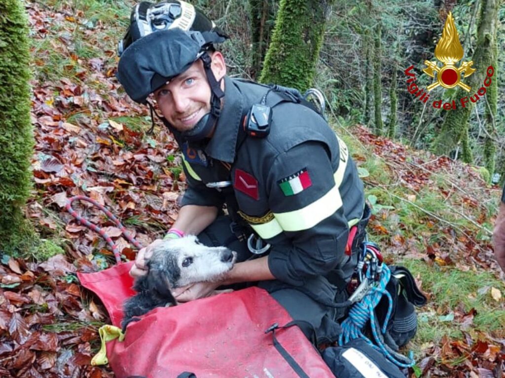 I Vigili del fuoco utilizzando tecniche SAF (Speleo Alpino Fluviali) hanno approntato un sistema di corde che ha consentito di calare un soccorritore per circa 12 metri che raggiungeva il cane bloccato su un terrazzino esposto e lo metteva in sicurezza, facendosi poi recuperare dal resto della squadra.