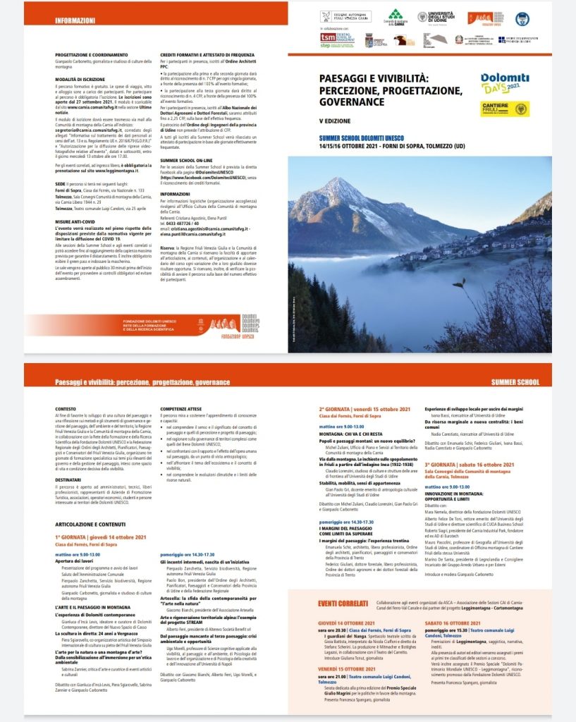 Solo una rete interconnessa di portatori d’interesse può dare alla montagna lo slancio di cui ha bisogno per proiettarsi nel futuro: è questa la filosofia con cui la Regione Friuli Venezia Giulia, in collaborazione con la Comunità di montagna della Carnia e la Fondazione Dolomiti UNESCO organizza l’edizione 2021 della Summer School Dolomiti UNESCO.
