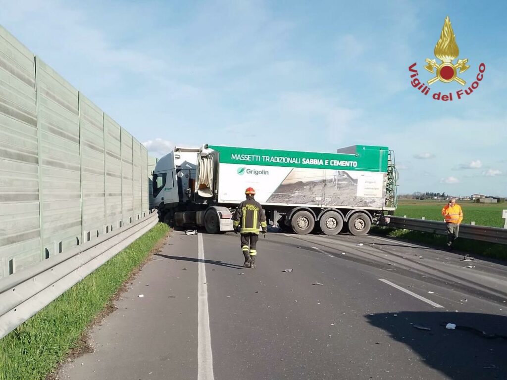 Illeso l’autista del mezzo pesante. La strada è al momento chiusa alla circolazione.