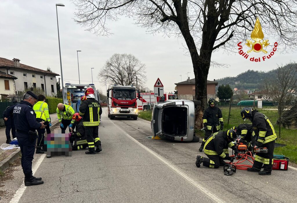 MONTECCHIO MAGGIORE (VICENZA). Poco prima delle 8:00, di giovedì, i vigili del fuoco sono intervenuti in Via Lovara a Montecchio Maggiore in provincia di Vicenza per un’auto finita rovesciata dopo aver impattato contro un platano: ferita la conducente.