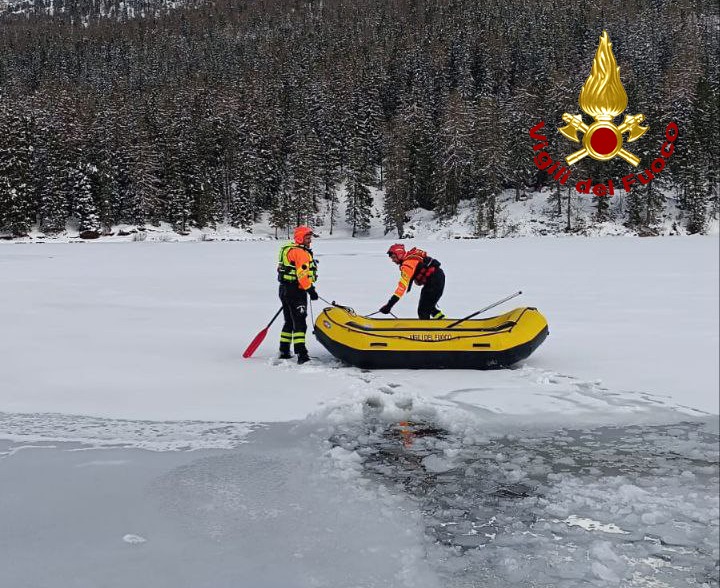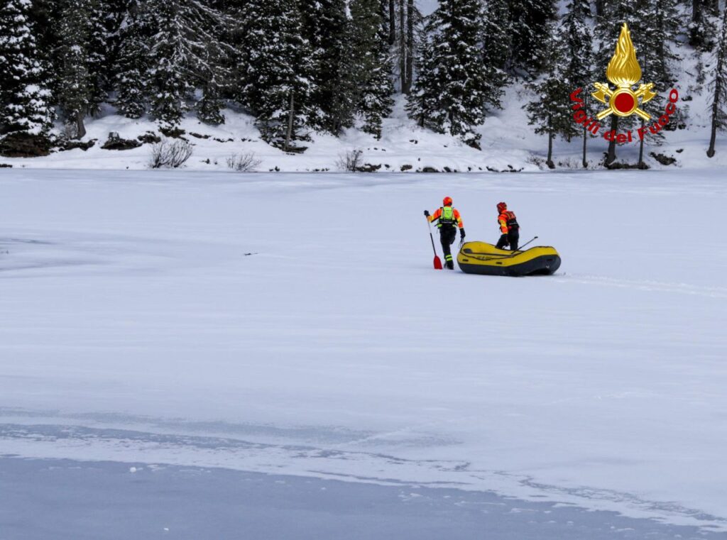 Drone in avaria finisce in mezzo al lago ghiacciato di Misurina: recuperato dai vigili del fuoco