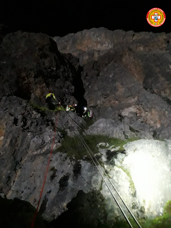 Un intervento di soccorso notturno ha avuto luogo nella Val di Fassa, precisamente nel gruppo del Sella, intorno all'1 di notte. Due alpinisti, un uomo e una donna di origine spagnola, erano rimasti incrodati sulle pareti del Piz Ciavazes. I due avevano appena completato la via Schubert, ma durante la fase di discesa hanno commesso un errore nella scelta della linea di calata in corda doppia, rimanendo bloccati in parete.