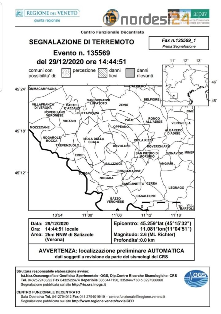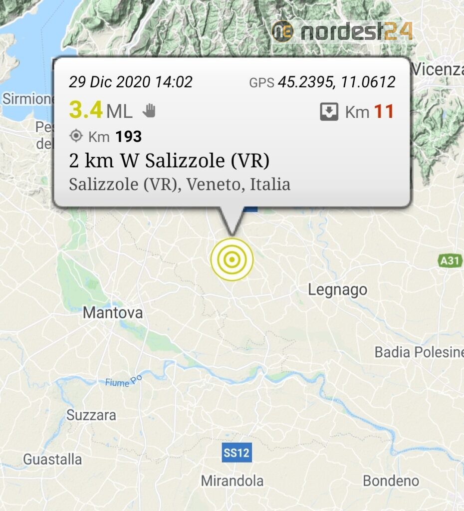Per quest’ultimo episodio nella zona di Salizzole, il terremoto è stato localizzato dall’Istituto Nazionale di Geofisica e Vulcanologia a 11 km. di profondità.