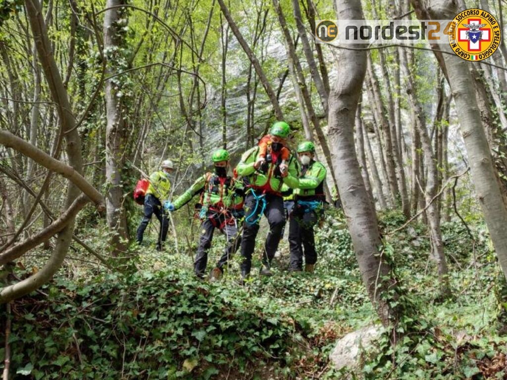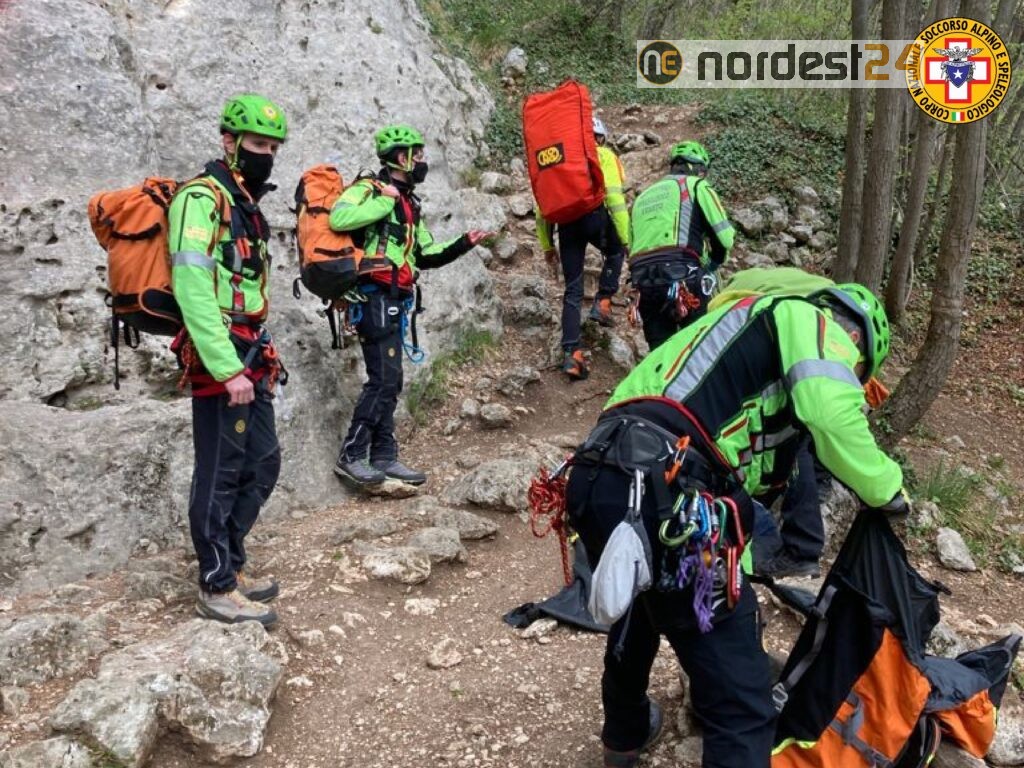 Calato a terra dal compagno, l'infortunato, M.D.A., 56 anni, tedesco residente a Verona, è stato raggiunto da due squadre, una scesa a piedi dall'alto lungo il sentiero, l'altra salita con il fuoristrada da una mulattiera.