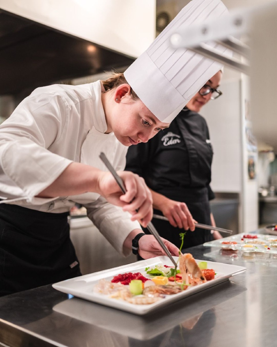 27 anni, Eleonora, da 4 anni Chef de Partie del suo Eden segna con questo ingaggio la maturazione di un percorso professionale in crescita, formato sulla visione di Eden della cucina – sempre di massima qualità, nel solco della tradizione e con un tocco di raffinata creatività – ma anche dell’accoglienza, di una relazione con il cliente animata dal desiderio di offrire un’esperienza di gusto gratificante e insieme, il senso di un’ospitalità cordiale, semplice, ispirata dal desiderio di fare stare bene. Familiare, proprio come la gestione e l’anima di Eden.
