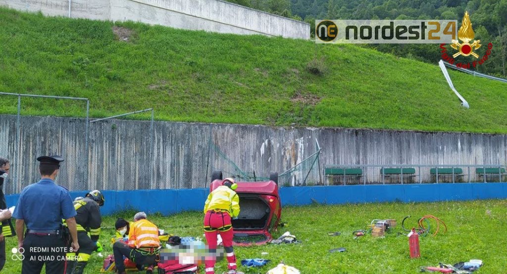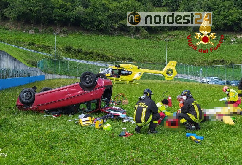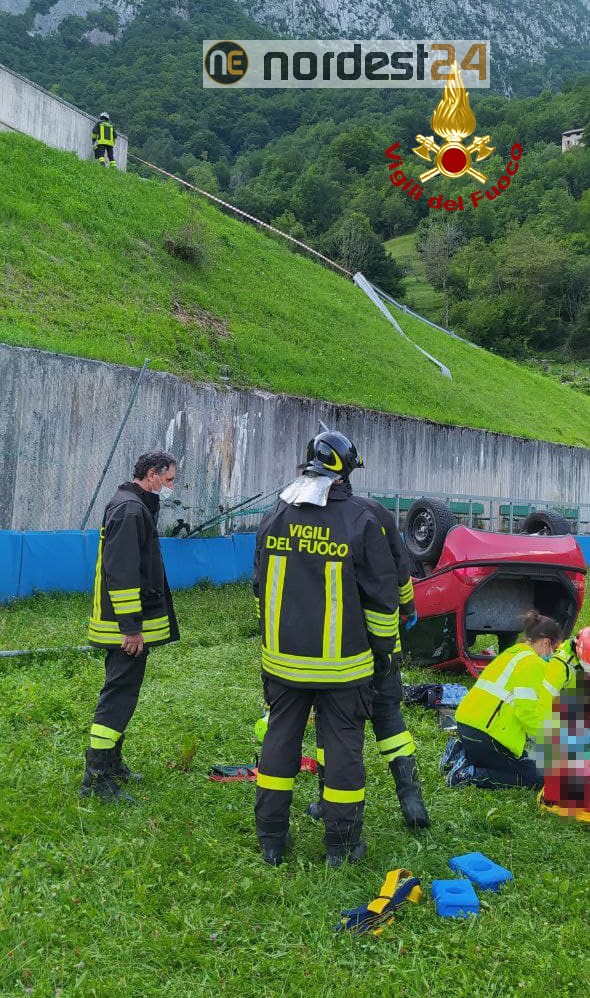 Alle 17:50, i vigili del fuoco sono intervenuti lungo Via Serrada a Erto e Casso in provincia di Pordenone per un’auto finita rovesciata nel sottostante campo sportivo dopo aver sfondato il guardrail ed essere precipitata per circa 20 metri: tre feriti.