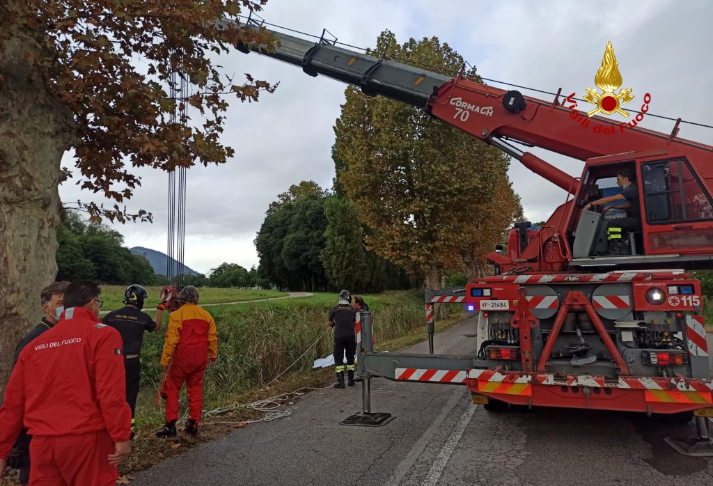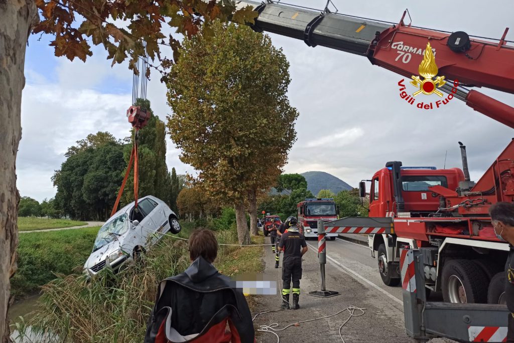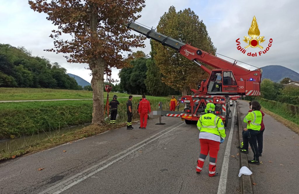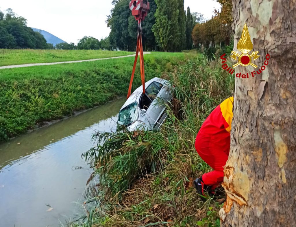 I pompieri arrivati da Padova e da Vicenza con i sommozzatori, hanno agganciato l’auto issata dall’autogrù e iniziato l’ispezione del canale per escludere la presenza in auto di altre persone.