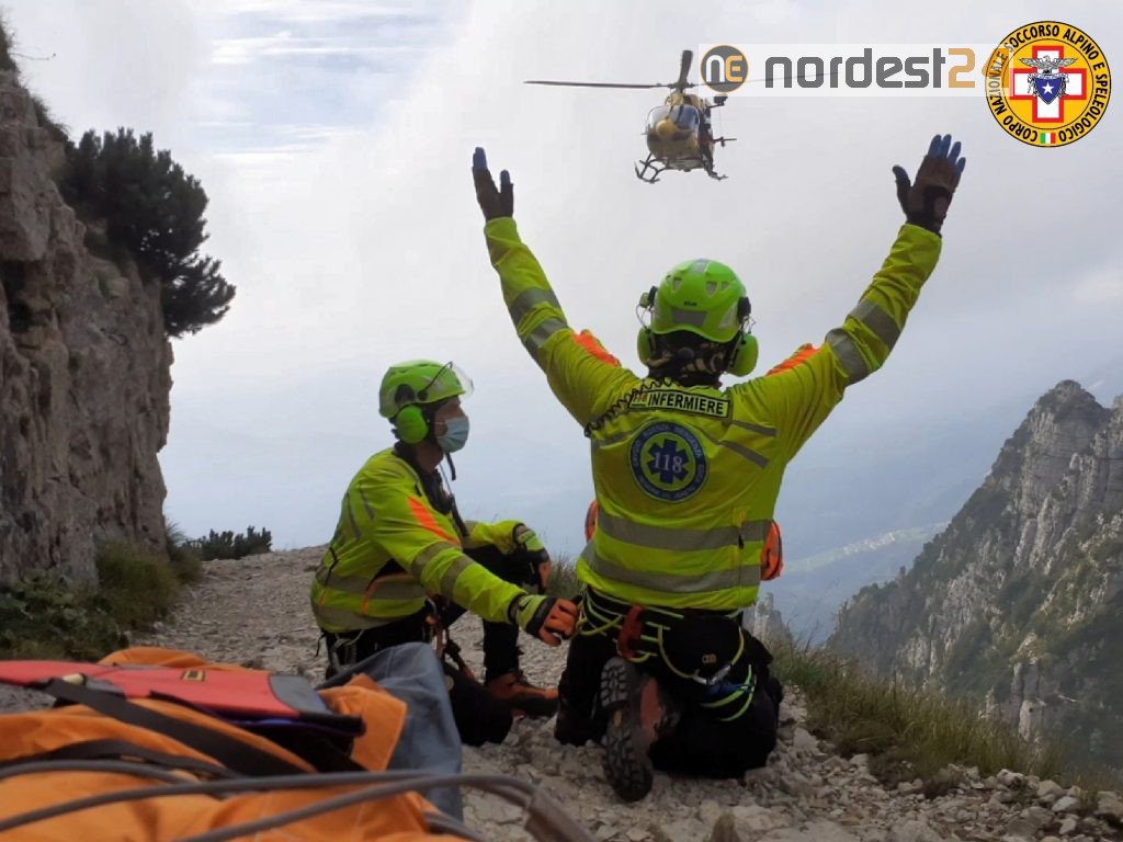 Mentre una squadra del Soccorso alpino di Schio raggiungeva a piedi il punto dell'incidente e un'altra si portava a Bocchetta Campiglia, campo base per l'equipaggio, l'elicottero ha sbarcato in hovering nelle vicinanze della 30a Galleria tecnico di elisoccorso ed equipe medica.
