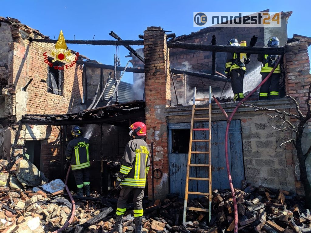 I pompieri arrivati dal comando di Rovigo e dai distaccamenti di Este e Piove di sacco con tre autopompe, due autobotti e diciassette operatori hanno spento le fiamme della vecchia casa rurale.