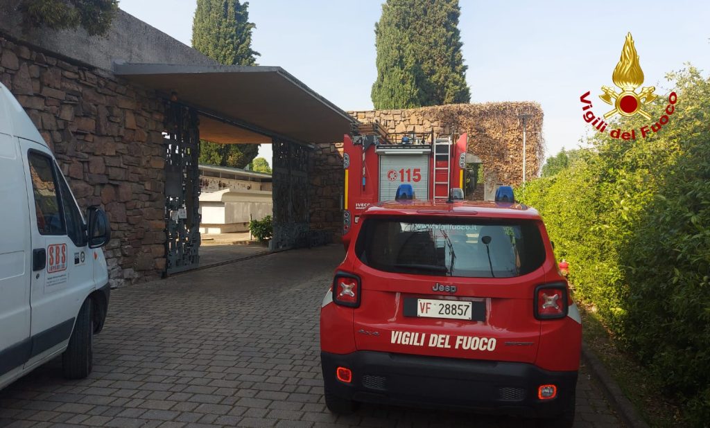 Esplosione nel forno crematorio del cimitero: intervento dei pompieri