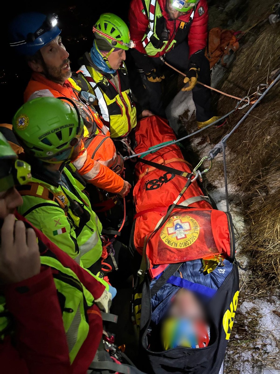 Il medico del Soccorso alpino gli ha subito prestato le prime cure, in attesa dell'arrivo dell'elicottero, che avrebbe accorciato i tempi di discesa. Purtroppo l'avvicinamento è stato impedito dalla presenza di nebbia, che ha costretto l'equipaggio a ritornare alla base. Stabilizzato e caricato sulla barella, l'infortunato è stato quindi portato dai soccorritori per tutto il tragitto. In un primo tratto è stato necessario attrezzare un centinaio di metri di calata con le corde, per poi procedere nella neve lungo il sentiero fino al fuoristrada. Il rendez vous con l'ambulanza si è svolto a Porcen e il ragazzo è stato accompagnato all'ospedale di Feltre.