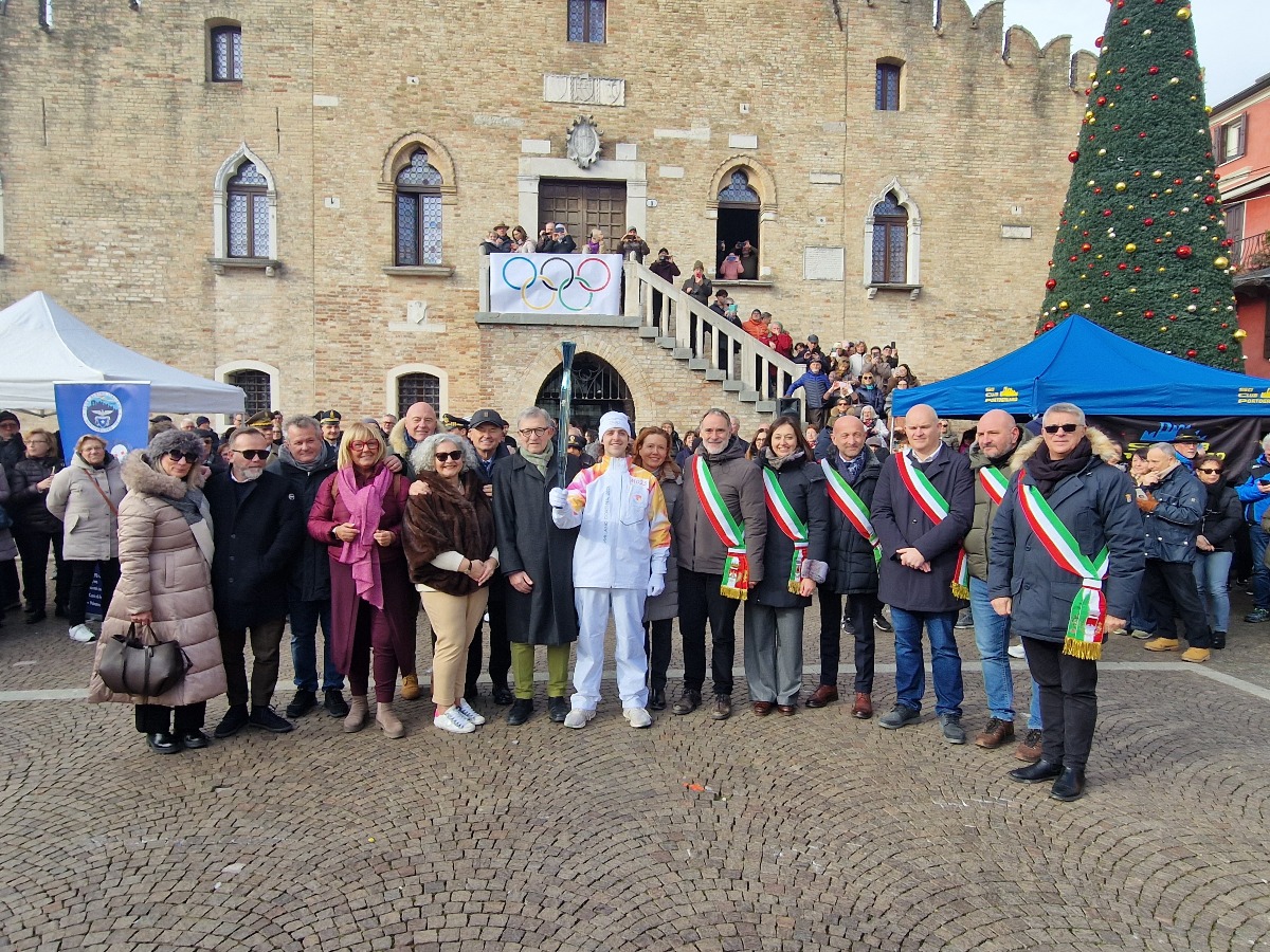 Portogruaro accoglie la Fiamma Olimpica: centinaia di cittadini in centro storico tra musica, scuole e associazioni.