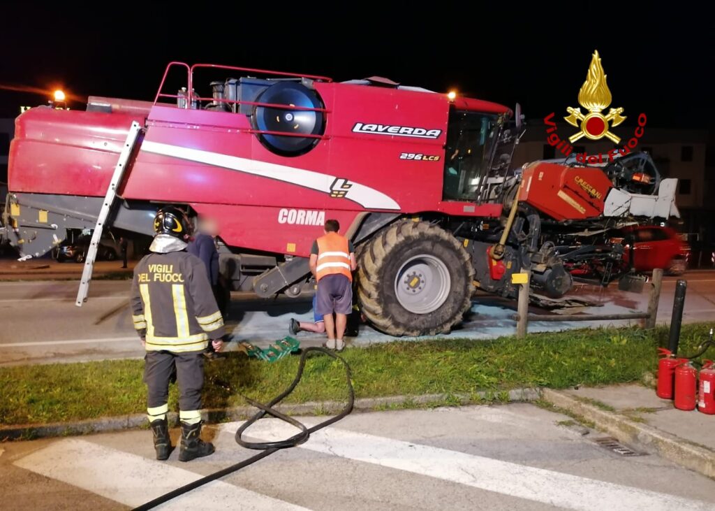 Lunedi sera, poco dopo le 21:30, i vigili del fuoco sono intervenuti in lungo la SR11 a Grisignano del Zocco in provincia di Vicenza nei pressi dell’hotel Venice per un principio d’incendio di una mietitrebbia per il blocco del sistema frenante.