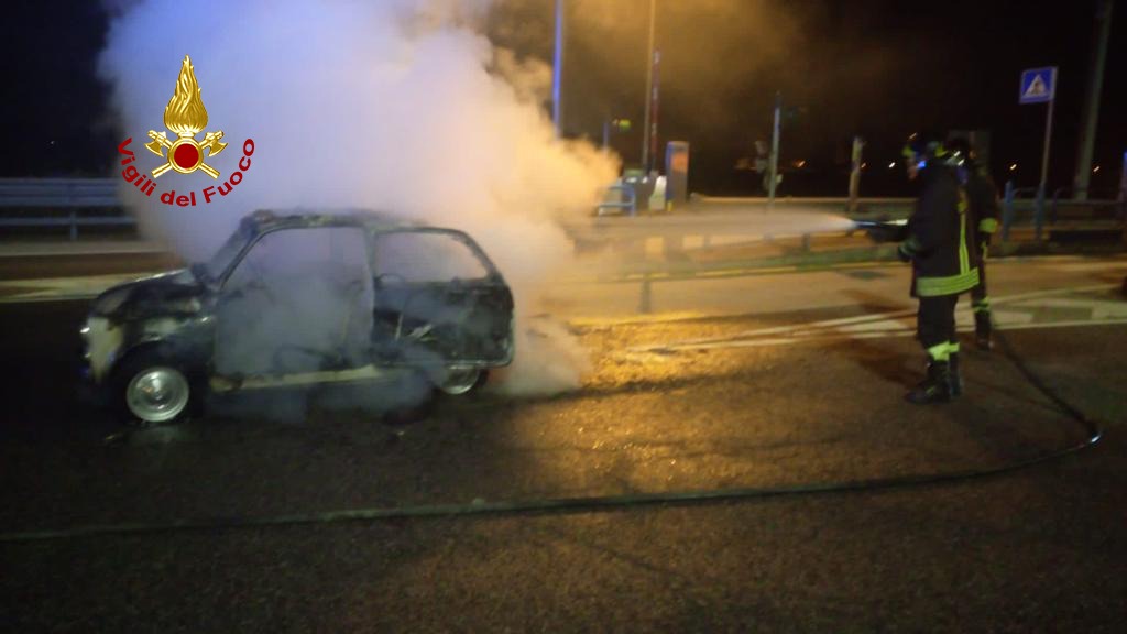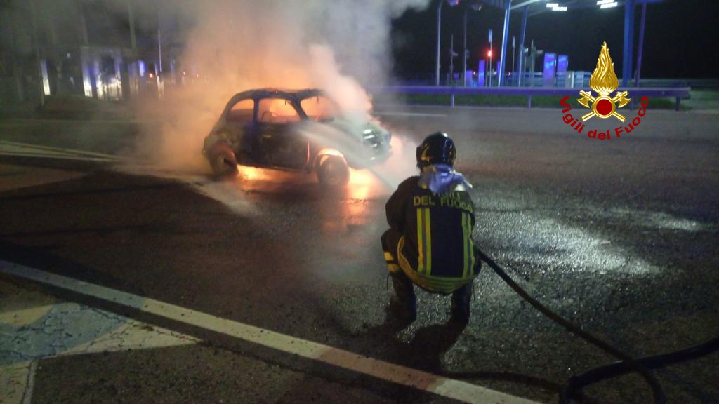 Alle 19:30, di mercoledì, i vigili del fuoco sono intervenuti all’uscita del casello dell’A13 di Terme Euganee in provincia di Padova per l’incendio di una Fiat 500 degli anni 60: illeso nessuna persona ferita.