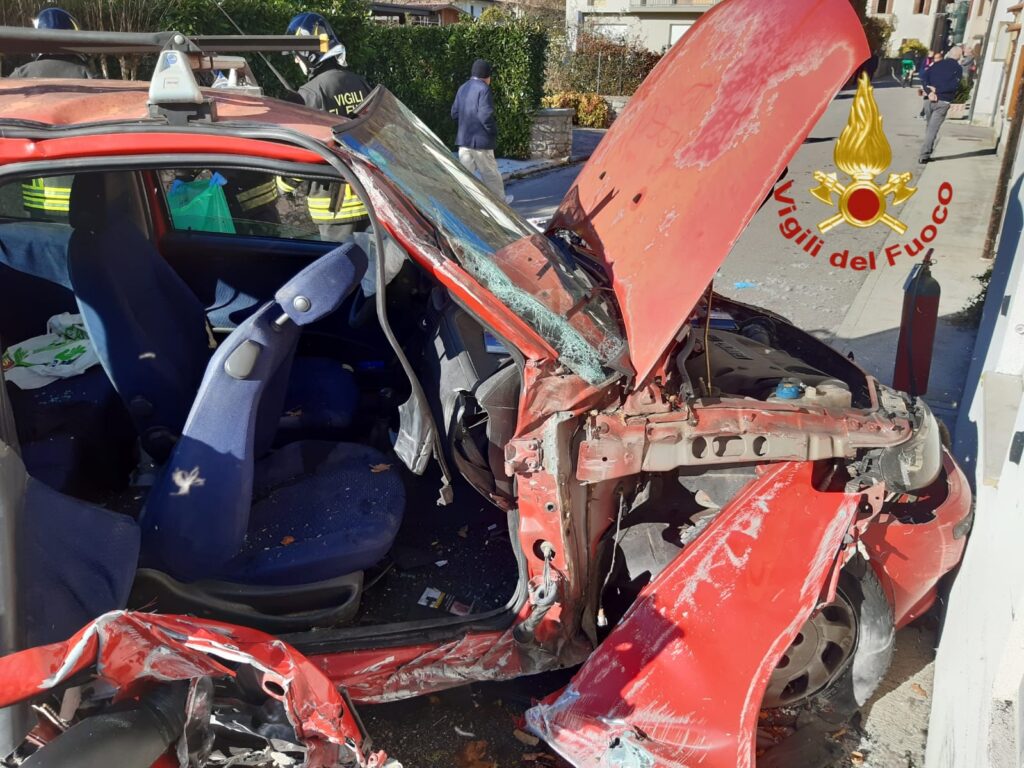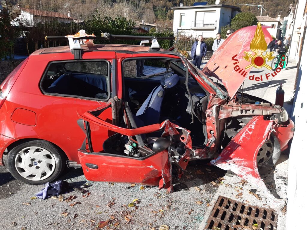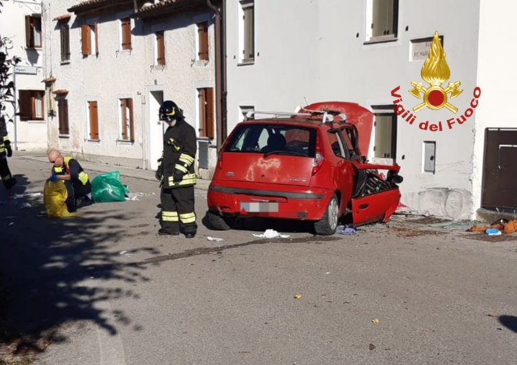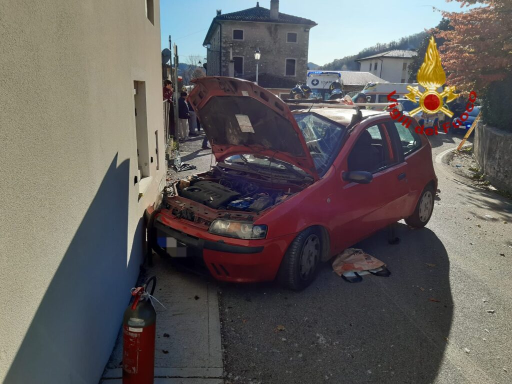 Poco prima delle 11:30, di domenica, i vigili del fuoco sono intervenuti in via Jacopo Bernardi a Follina in provincia di Treviso per un'auto finita contro il muro di un'abitazione, dopo la perdita di controllo del conducente, rimasto ferito insieme ad altri tre passeggeri.