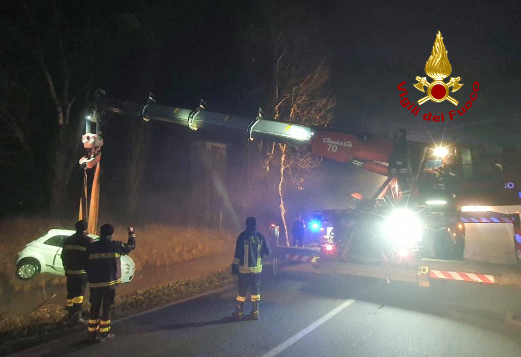 Martedì sera, alle 21:30, i vigili del fuoco sono intervenuti in via Valsanzibio a Galzignano Terme in provincia di Padova per un’auto finita in acqua nel canale di scolo a bordo strada, dopo la perdita di controllo del mezzo da parte del conducente rimasto illeso. I pompieri arrivati da Abano Terme e da Padova con l’autogrù, hanno provveduto al recupero della Fiat 500 portata via dal carroattrezzi. Le operazioni di soccorso dei vigili del fuoco sono terminate poco prima della mezzanotte.