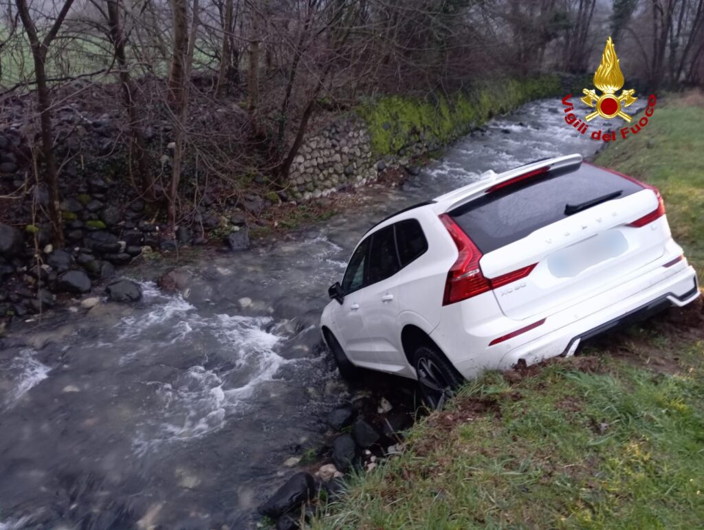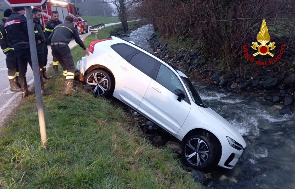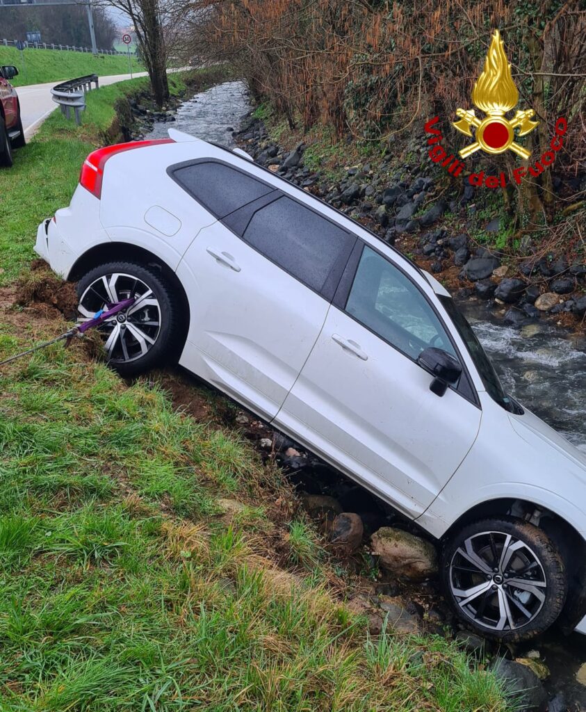 SCHIO (VICENZA). Domenica mattina, 3 marzo, i vigili del fuoco sono intervenuti in Via Pianezze a Schio per un’auto finita parzialmente dentro un piccolo corso d’acqua adiacente la strada: nessuna persona è rimasta ferita.