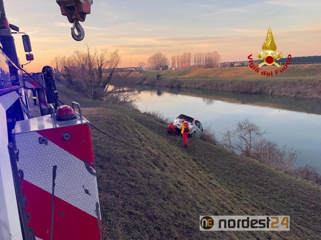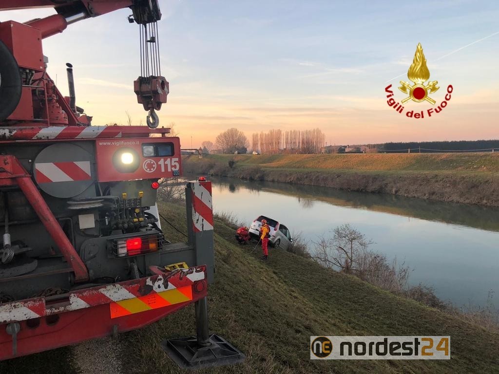 I pompieri arrivati da Piove di Sacco e da Padova con l'autogru', hanno lavorato oltre due ore per recuperare la vettura e riportarla in strada.