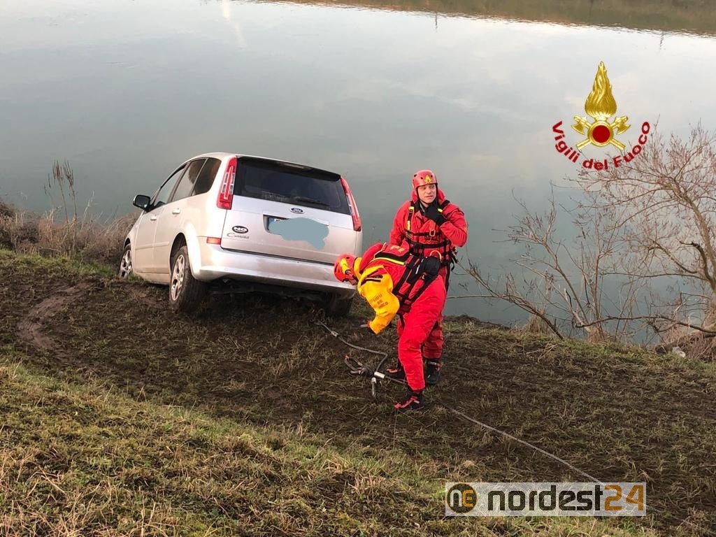 Finisce fuori strada e si ferma in bilico sull'argine del fiume