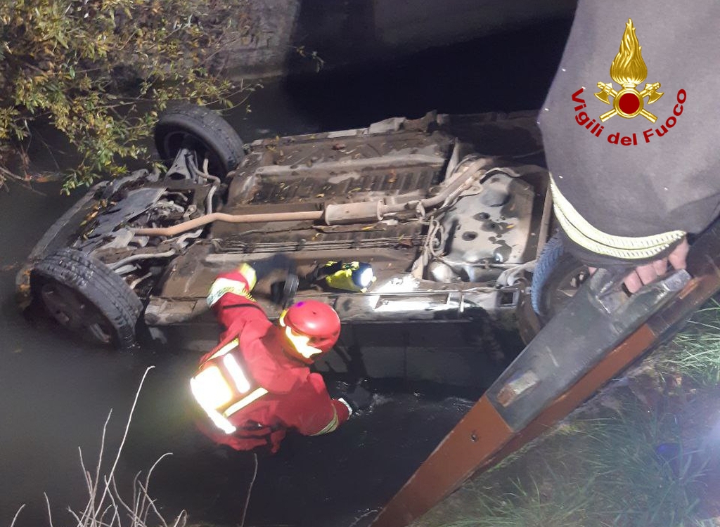 Finisce nel canale con l'auto: conducente esce, il cane resta intrappolato all'interno