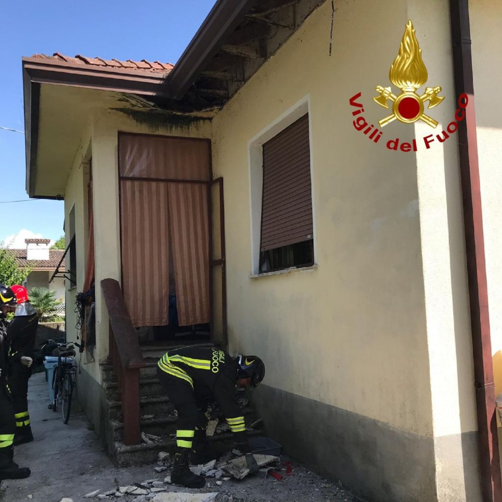 Una squadra dei vigili del fuoco della sede centrale di Pordenone è intervenuta per il crollo di parte del cornicione di un'abitazione a Fiume Veneto, che ha coinvolto una donna che vi risiedeva.